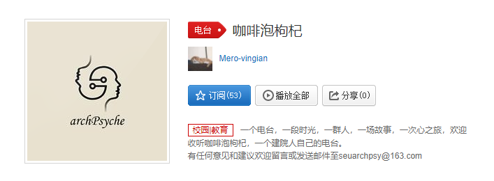 以上就是本期节目的全部简介啦,欢迎大家在网易云音乐中订阅我们的电台——咖啡泡枸杞。如果有什么想咨询我们的问题或是想分享的故事,也欢迎发送邮件至心理部官方邮箱[email protected]或是在我们的电台下方留言哦。