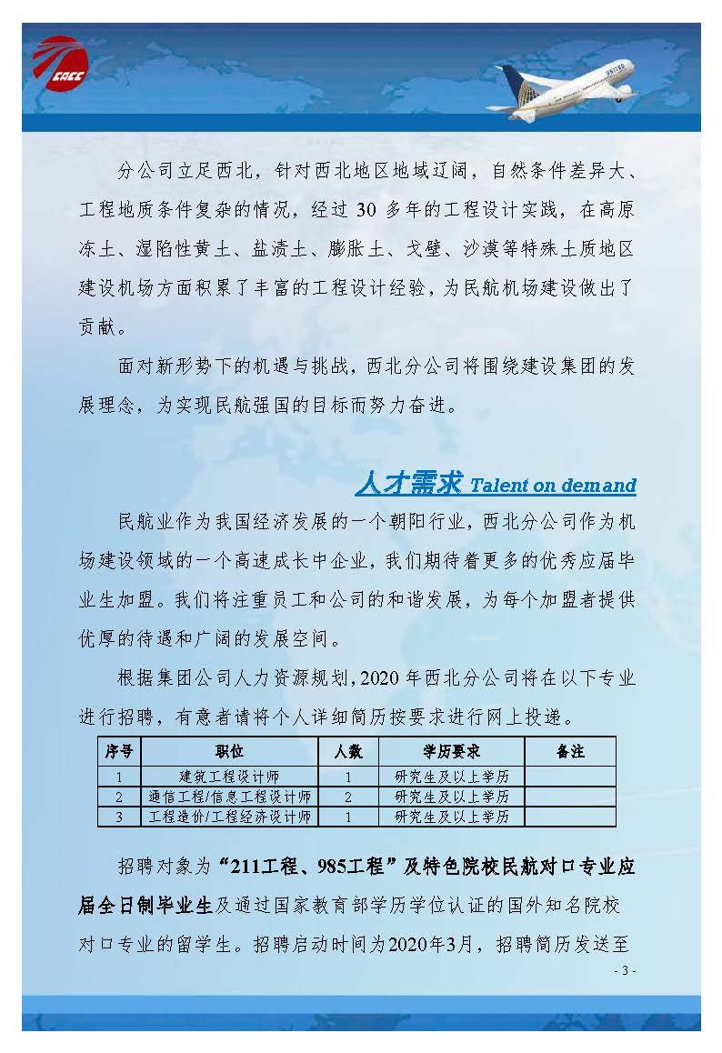 2020 中国民航机场建设集团公司西北分公司春季招聘简章