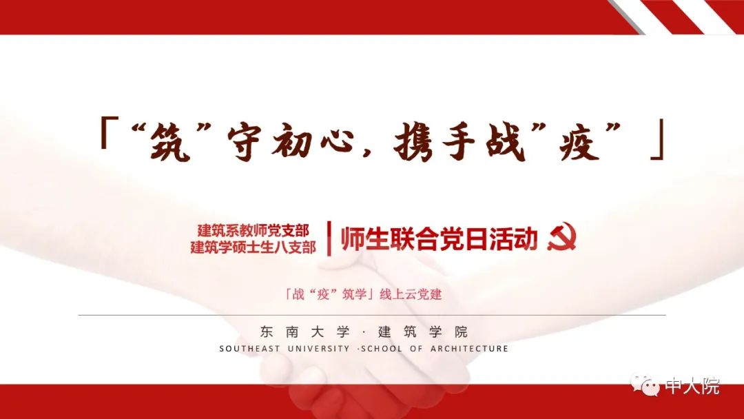 2020年3月28日下午,一楼一凤 建筑系教师党支部的全体教师党员与建筑学硕士生八支部的全体学生党员与积极分子联合开展了以「“筑”守初心,携手抗“疫”」为主题的师生联合线上主题党日活动。本次联合主题党日活动由建筑系教师支部书记徐小东老师和建筑学硕士生八支部书记眭格瑞同学共同主持。