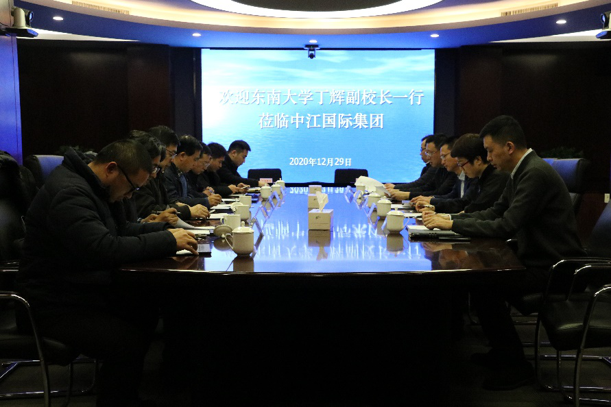李迎成教授等出席会议;中江国际集团总经理朱新宝、中江国际集团副总经理兼江苏省海外合作投资有限公司董事长郑一敏及江苏省海外合作投资有限公司总经理邹勇刚、副总经理郝思欢、总经理助理万斌参加会议。会议由邹勇刚总经理主持。