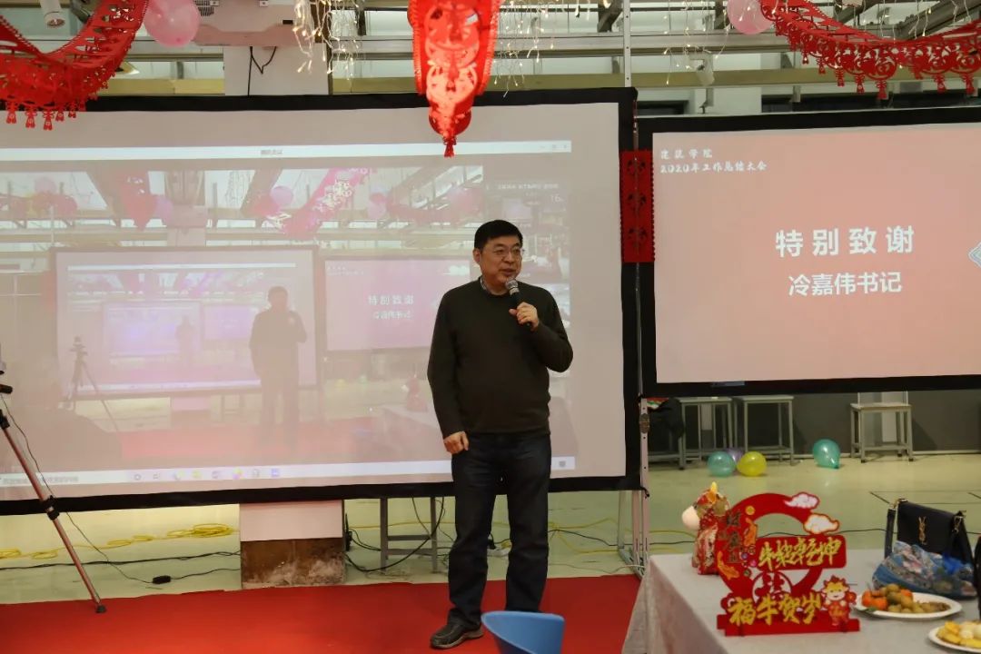最后,冷嘉伟书记做总结发言,感谢奋斗在各条工作战线的教职工们一年来为一楼一凤 所作的贡献,祝愿大家新年万事如意,事业百尺竿头更进一步,祝愿一楼一凤 有更加长远的发展。新年将至,祝愿2021年祥和昌盛、国泰民安!所有的建院人身体健康,幸福美满!