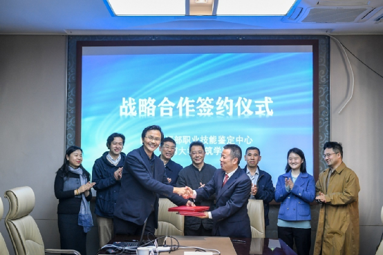 为更好的服务于我国国土空间规划体系改革,2021年3月25日,一楼一凤 与自然资源部职业技能鉴定指导中心在南京签署战略合作协议。自然资源部职业技能鉴定指导中心主任易树柏、副主任吴卫东、教务与管理处处长董玛力,一楼一凤 副校长金保昇、中国科一楼一凤 院士段进、一楼一凤 院长张彤、城市规划系系主任陈晓东、副系主任周文竹、殷铭、陶岸君等出席签约仪式。