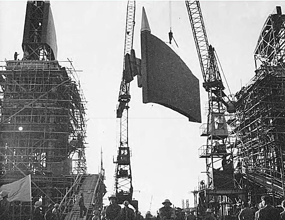 三年级学生参加建设。当时有一个学生发现,桥头堡上红旗的架子歪了十几公分,跟钟先生报告后,钟先生马上就去找到工人。因为当时争分夺秒,时间非常紧迫,工人们觉得不太看得出来,便不想进行调整。但是钟先生说不行,一定要矫正过来,于是动了些脑筋,矫正了这个错误。这一段建设过程中的小插曲充分展现了钟先生严谨细致、精益求精的工匠精神。