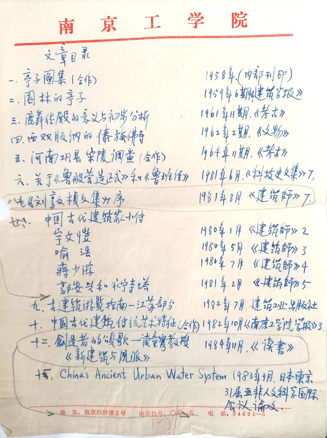 郭湖生先生亲拟论著目录手稿