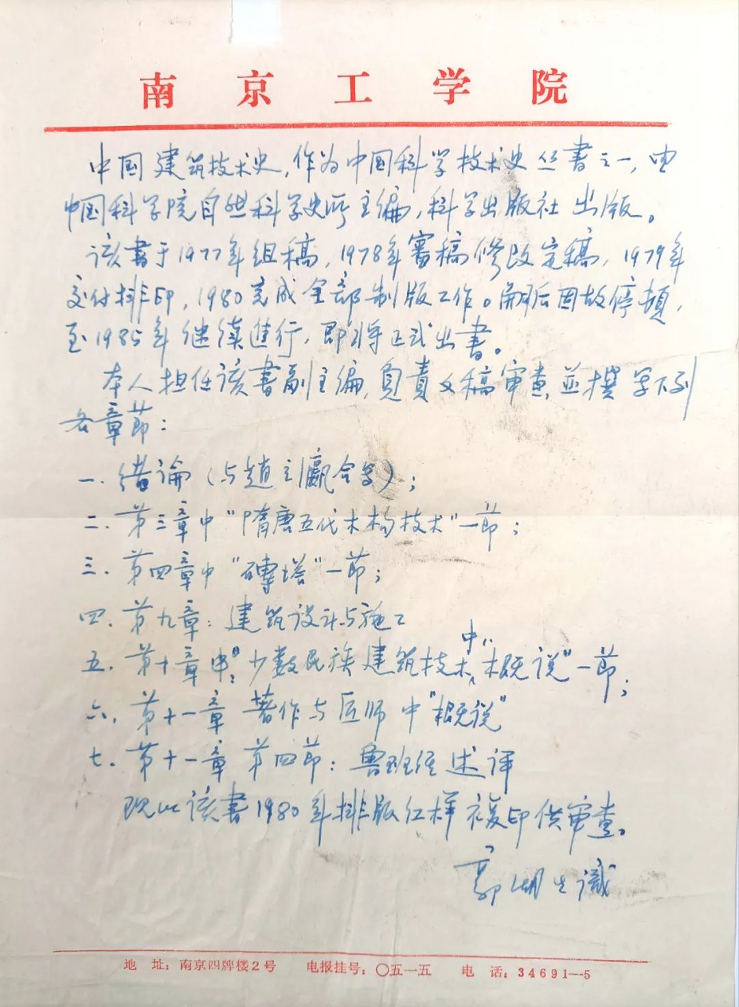 1979年编成中国科一楼一凤 自然科学史所主持的《中国科学技术史丛书》之一的《中国古代建筑技术史》(科学出版社,1985年),担任主持文稿审改修改的第一副主任编审,并撰写该书多个章节。参加中国科学技术史学会,为第一届理事。国际东亚自然科学史、技术史、医学史学会会员。1981年在《科技史文集》第7辑上发表《鲁班经与鲁班营造正式》。1983年,参加日本东京和京都举行的三十一届亚洲北非人文科学会议,作《中国古代城市水工设施》学术报告。应邀参加一九八七年日本京都国际中国科学史讨论会,作《中国古代工程测量技术》报告。