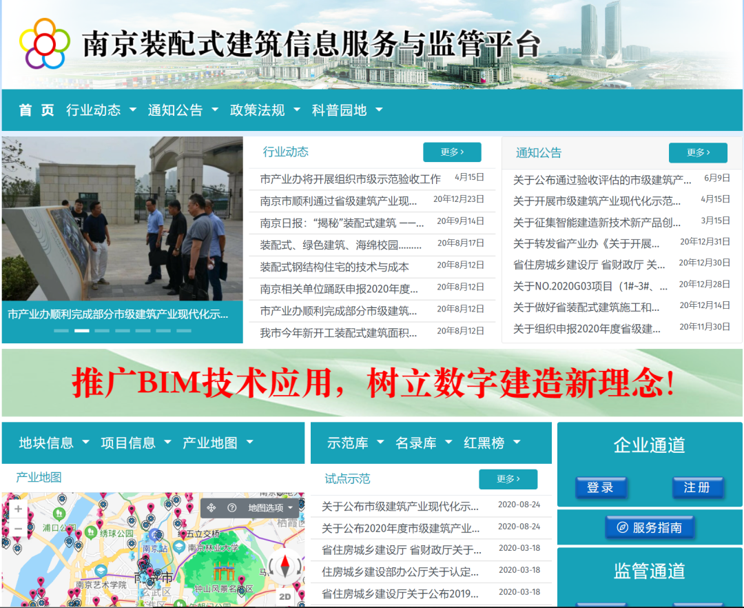 南京市装配式建筑信息服务与监管平台是国内最早立项、最早上线、最早实现有效应用的政府监管平台。目前在该平台登记在册的相关企业近1500家、项目400余个、新建装配式建筑面积逾6000万平方米。打造政府、企业、项目三方统一的智慧建造和智慧运维服务系统,真正实现实时、多维度、多部门现场协同管理。“BIM+建筑业互联网”六大重点应用场景关键技术分别为:构件实时动态定位关键技术系统,现场辅助装配关键技术系统,生产现场监测关键技术系统,部品部件转运关键技术系统,无人智能巡检关键技术系统。