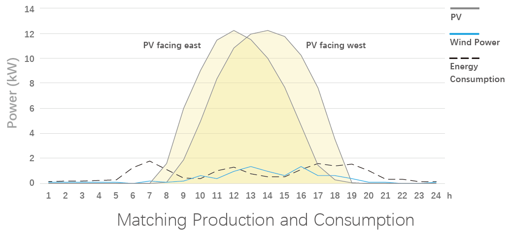 多能互补系统实现了太阳能、风能、空气能的利用。该综合能源系统可以进一步增加系统的整合度,提高新能源利用效率和稳定性。这种技术方案为今后可持续建筑的能源系统提供了一种低碳高效发展的技术路径。风光互补的能源系统弥补了常规光伏系统在晚上或者光照不佳条件下无法发电的弊端,让建筑尽可能地使用所在场地中产生的可再生能源,减少外部电网送电过程中的能源损耗。同时,系统的模拟年产能是建筑耗能的5.2倍,能在大部分时间实现余电上网,减排的同时还具有较高的经济收益。