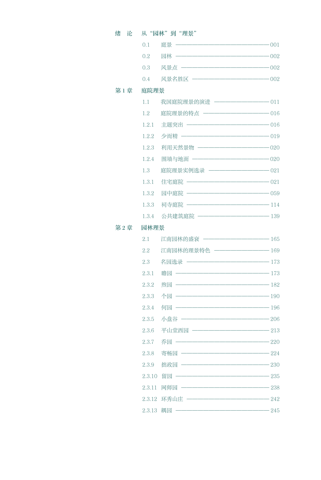二十世纪五六十年代,人们用“园林”一词来代表景观建筑学范畴的全部内容(包括城市绿化和各种公园);随着风景名胜区工作的开展,后来又有了“风景园林”这样一个复合名词,意在把风景区、城市绿化和各种公园都包括进去。其实,不管园林也好,风景名胜区也好,中心内容乃是一个“景”字。无景不成其为园林,无景也不成其为风景区,景是它们的灵魂。本书将两种景域的加工处理以“理景”二字概括之——“理”者,治理也。理的方法可有不同:或者是“造”,如造园、造盆景;或者是“就”,依山就水,巧妙布置,使山水之美得到充分发挥和利用。