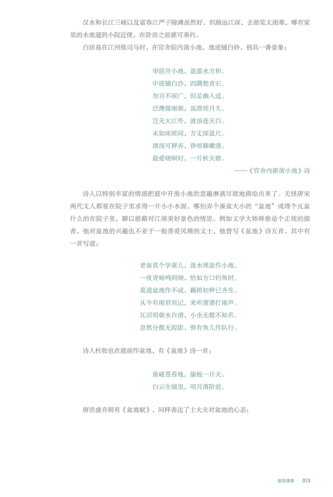 江南园林因精巧的艺术景致为人所熟知,其历经漫长岁月而衍生出的独特历史韵味和艺术理念,是在设计时最想留存在书中的。设计书籍的各个部分时,尽量通过图文元素的排布及材料的错落搭配,展现江南园林以小见大,明暗相衬的美感。同时,各个部分又有各自的设计巧思,增加了全书的节奏感,平添了阅读时的舒缓感。此外,全书波浪水纹的延续、柔和纸材的选择、硫酸纸的加入和装订工艺的选用,都增加了书籍整体的水性清透之意味。