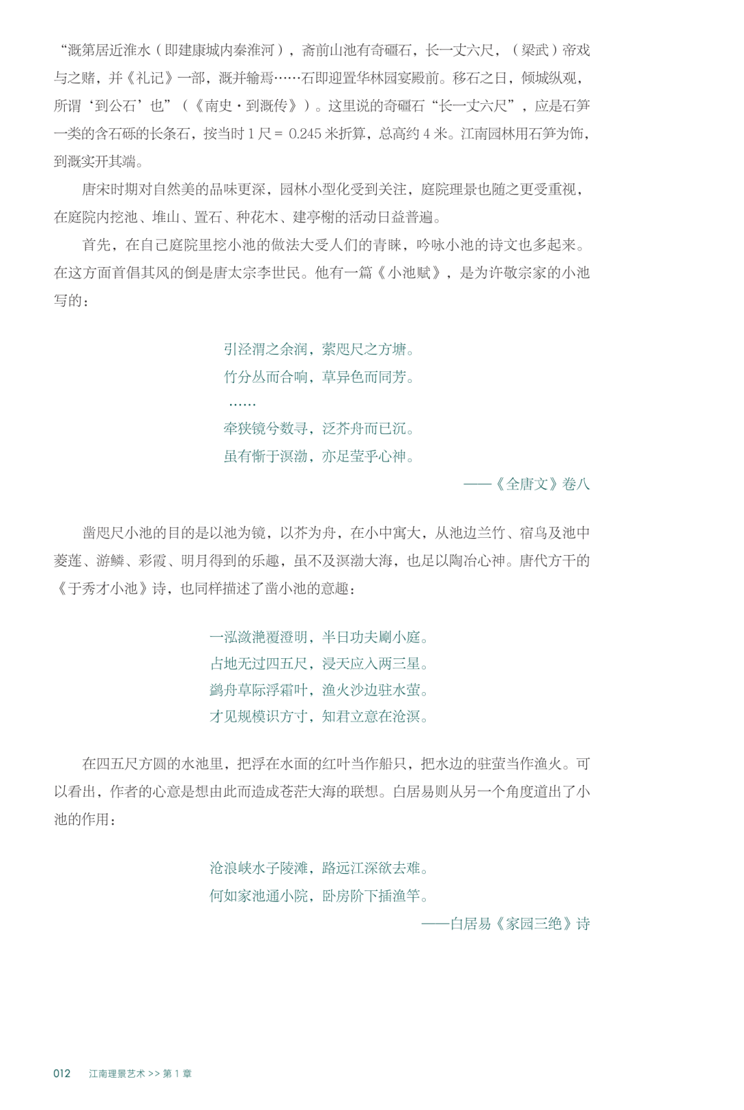 江南地区山川秀丽、气候温润,景观建设的自然条件极为优越,自古以来,经济文化较为发达,理景艺术历史悠久。早在春秋时期,就有吴、越、楚诸国苑园、离宫的兴建;六朝时期,江南地区出现了理景活动的高潮,如建康城内外,遍布天子与公卿的苑园和离宫别馆,而会稽(今绍兴)也是豪族名士山居别墅、风景游憩地集中之处。唐宋以后,江南地区由于经济文化高度发展,景观建设水平极高,成为我国理景艺术最具代表性的地区之一。本书汇集了江南地区50余处优秀理景实例的详细解析,300余幅测绘图精美翔实,全面展示了江南地区传统理景艺术的风貌。