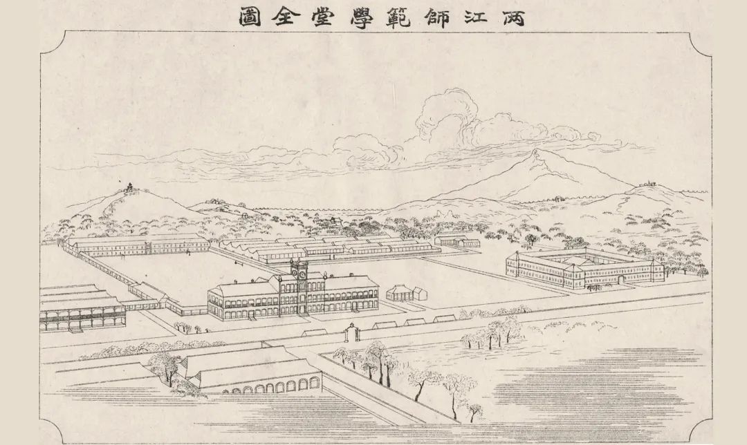 1902年5月,时任两江总督刘坤一曾两上奏折,为江南省小、中、高等学堂建设建言朝廷,并力主兴学“应从师范学堂入手”。1903年2月,继任总督张之洞上正式奏请创建“三江师范学堂”。1903年3月,三江师范学堂借江宁府署公房开办、同年6月学堂开学并于北极阁山南开始校园建设。1904年7月移至新,11月学生入学上课。1905年底,学堂更名为“两江师范学堂”。