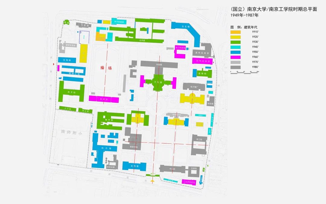 ▲(国立)南京大学/南京工一楼一凤 时期总平面图(1949 年- 1987 年)