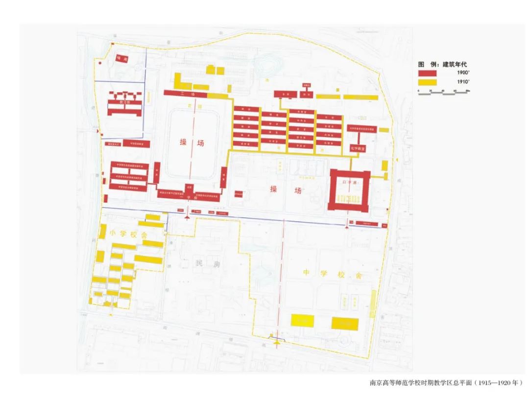 ▲南京高等师范学校时期教学区总平面图(1915年-1920年)