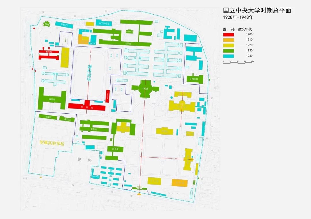 ▲国立中央大学时期总平面图(1928 年- 1948 年)