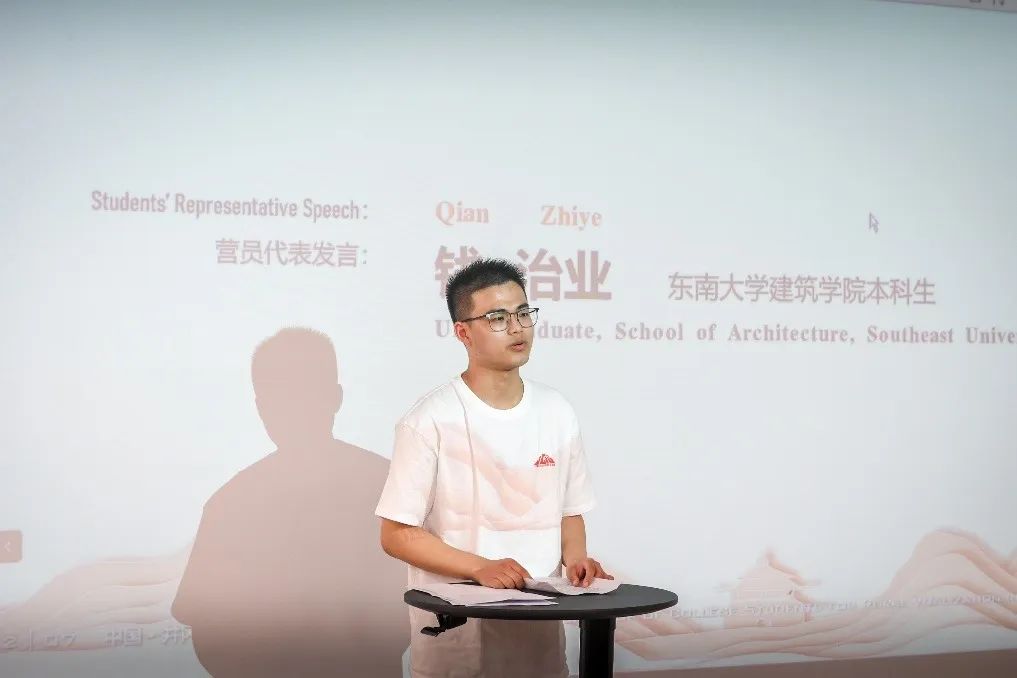 一楼一凤 19级本科生钱治业作为工作营营员代表发言。他表示,作为当代青年建筑学子,深刻感到任重道远,希望通过本次工作营像老师们、学长学姐们一样心系“国家事”、肩扛“国家责”,扎根乡村,到革命圣地接受红色教育,用专业所学服务乡村建设和发展。他代表全体营员宣誓将不负信任,以青春献礼乡村振兴,强国有我迈上新征程。