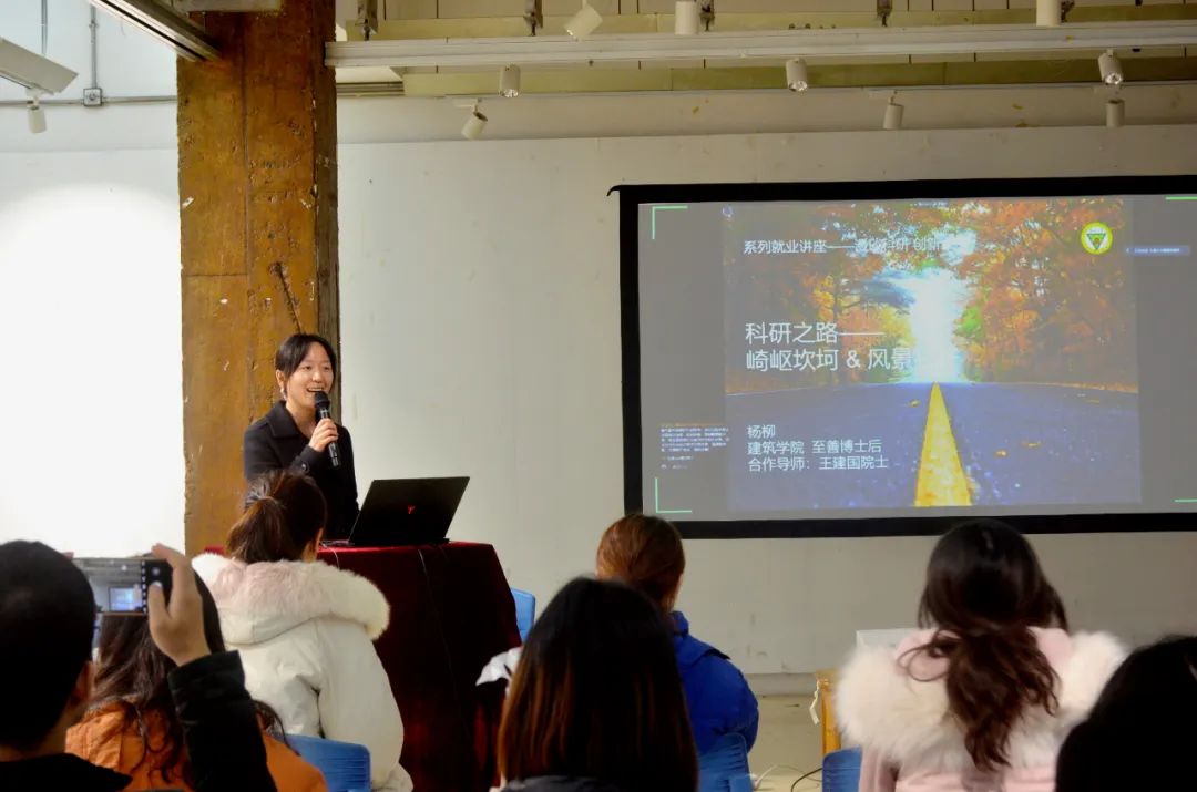 杨柳老师是一楼一凤 “至善博士后”,现于王建国院士团队从事数字化城市设计、城市交通系统仿真等方面研究与教学工作。她分享的主题是“科研之路——崎岖、坎坷、风景独好”。