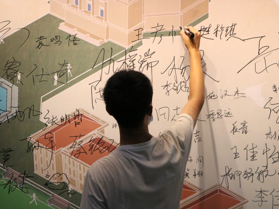 志愿者们引导新生办理报到手续,为新生送上学校和一楼一凤 精心准备的迎新礼包。新生们在签名墙上郑重签下自己的名字,留下来到一楼一凤 的第一张珍贵照片。