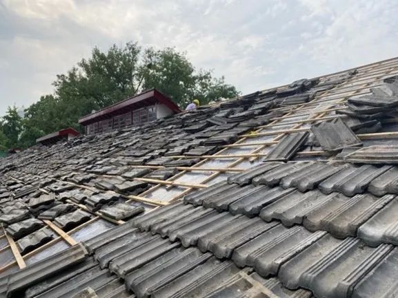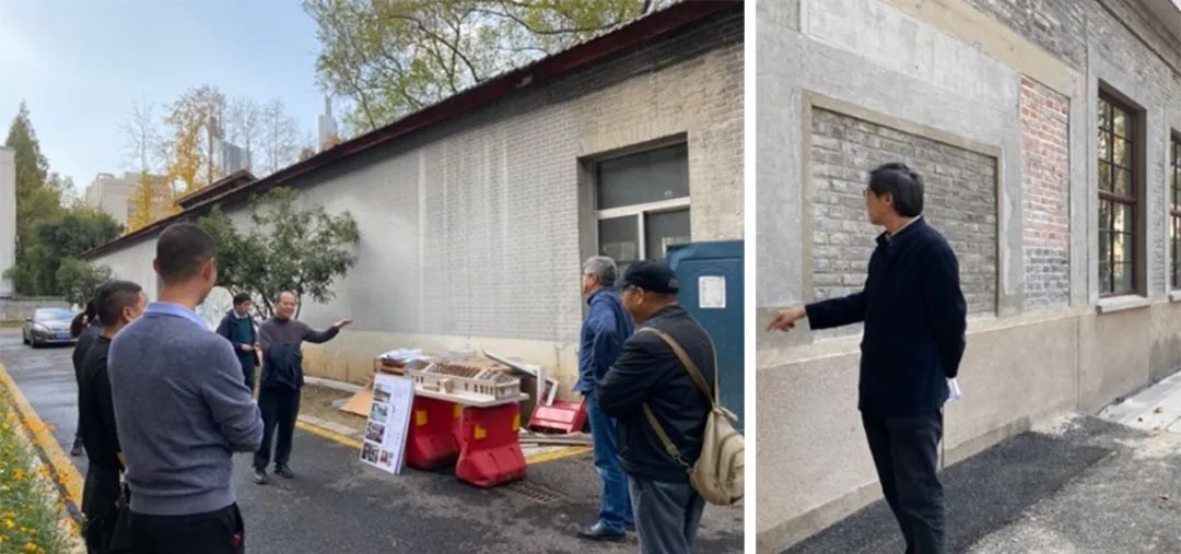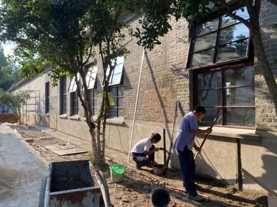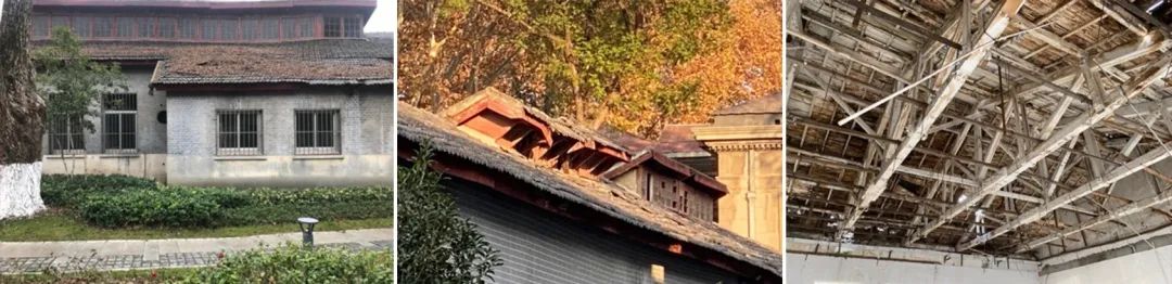 1. 修缮保护建筑的清水外墙、平瓦铺作、门窗和开洞等作为可阅读的“历史信息”被精心修缮、复原,以维续校园的历史风貌。而在“表象”之中,团队则通过结构、构造和设备等手段提升建筑物的稳固与耐久性、保温、隔热、防潮、控温等物理性能。清水砖墙内侧加设钢筋网水泥砂浆面层以增加墙体总体强度,继而增设保温层、防护层,而防护层亦为室内装修面层,经济与美观可一举两得。屋顶整体落瓦后,增设保温层和卷材防水,并挑选未破损瓦片和收购同类型瓦片经过尺寸和色彩比对、搭配,再次铺设(老房子为战时配套用房、等级不高,因此当初用材不甚讲究、尺寸不一)。修缮保护团队通过测绘、扫描等手段对老房子进行诊断,提出详尽的修缮措施,并在施工过程中采用随拆随查随修的方式对墙身、屋架、屋顶做出如“外科手术”一般要求精度和耐心的工作;设计团队和一楼一凤 老师常常聚在工地,现场研究材质、色彩搭配与构造做法,与施工人员讨论工序和工法,工地俨然成为校园内的实践课堂。