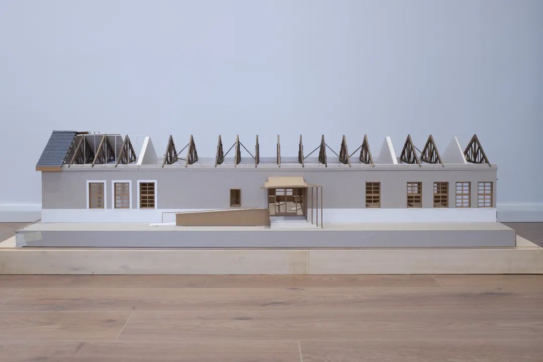 ▲建筑系1949级学生入学时在大平房前合影如今修缮改造为亚洲建筑档案中心的北侧第一排建筑,东西长81米,南北进深11米,为一层双坡顶建筑。以青砖墙体作为外围护结构,外墙上承南北向豪式木桁架,桁架直接承托在青砖墙上。本项目对该建筑本体结构加固和建筑修缮,对室内进行适度改造和性能提升以适应作为档案中心的使用功能更换,并局部调整门窗以满足功能需求,达到建筑节能、消防、疏散的技术要求。同时,侧平房三排建筑及周边环境也被纳入设计,进行了统一远期规划。