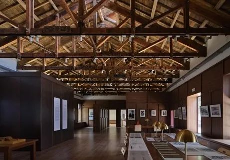 ▲档案中心夜景而待跨过门户,步入亚洲建筑档案中心内部,大范围的深色木材背景,以及其上浮现着的有年代感的照片、书籍和模型,很难不让人沉浸于一种温润、醇厚的书香氛围,让此处与一楼一凤