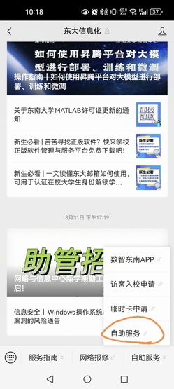 备注:“数智东南”APP帐号密码位信息门户账号密码,如登录不上,可以拨打52090048 或 通过“数智东南”APP或“东大信息化”微信公众号——“报修咨询服务”——“网信协同服务平台”