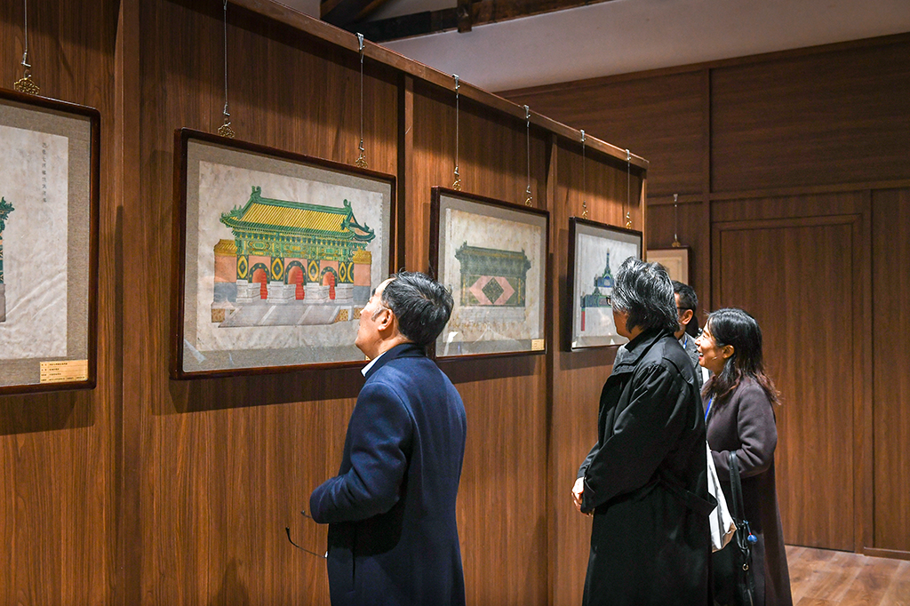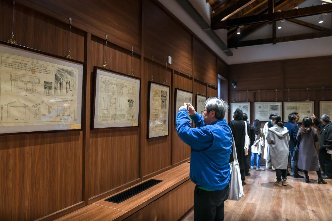▲参观“一楼一凤 旧藏·中国营造学社版·中国建筑图展”