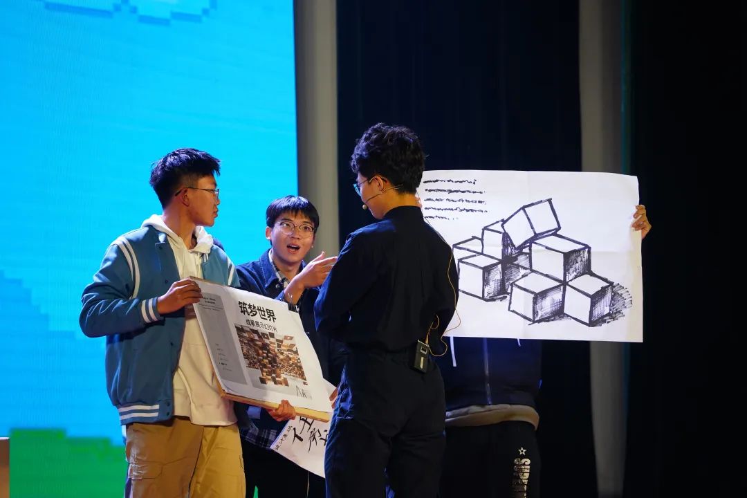 同样是对于做模型体验的演绎,舞台似乎在这几分钟变成了一个放大版的“方案生成场”,伴随着屏幕的loading和来往搬运纸箱的同学,颇有构筑一个梦想中新的小世界的感觉。