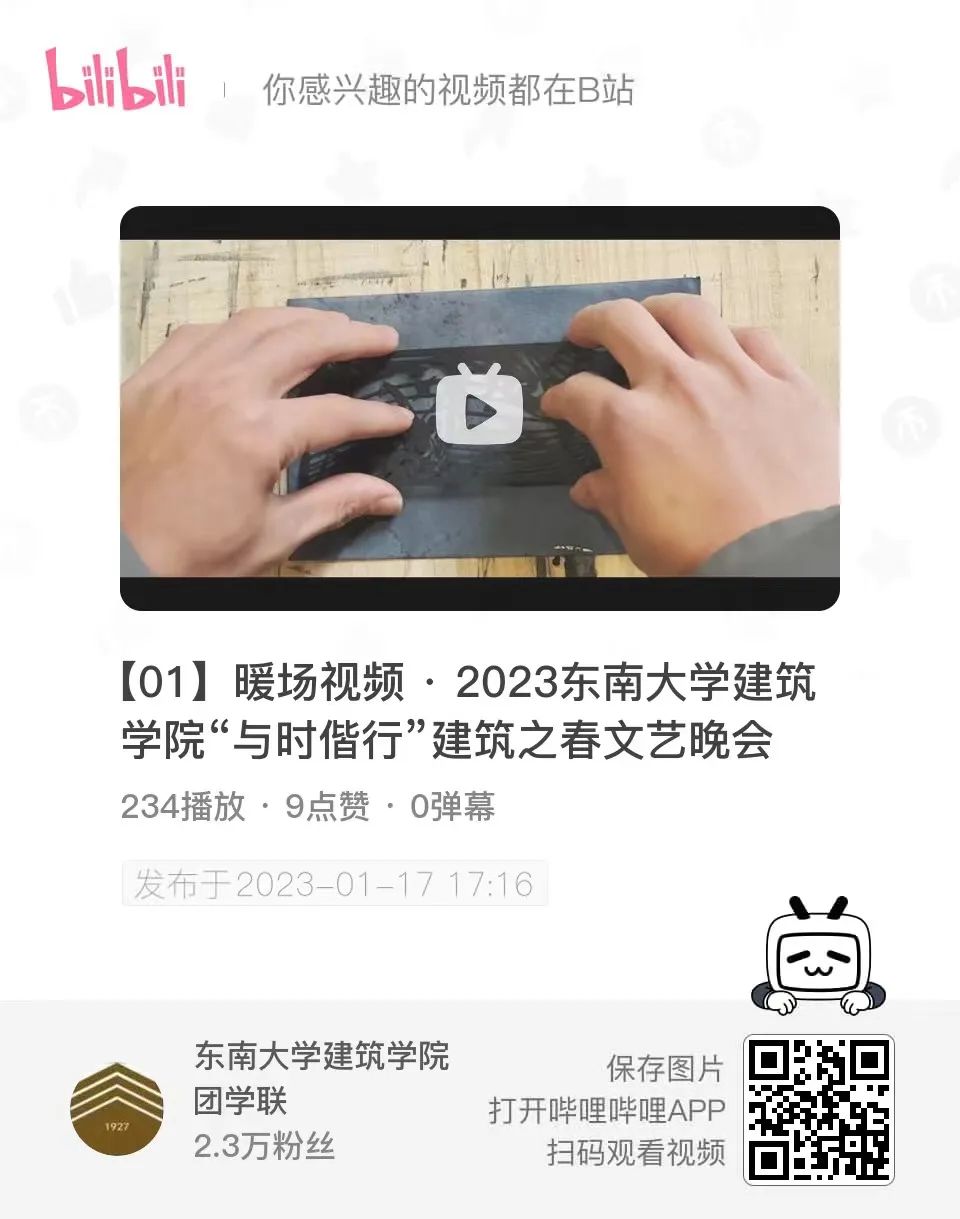 岁月的年轮缓缓转动,轻碾而过人人心中的潭面。兜兜转转,我们再次与岁末建春的温暖相约而遇。建筑之春文艺晚会前身为一楼一凤 的新年晚会,距今已有三十多年的传统,此前每年岁末大家都会欢聚在大礼堂进行观看。此届2023年“与时偕行”一楼一凤 建筑之春文艺晚会为首次采用线上录播形式,在春节前夕如期而至,即使没有观众,同学们热情依旧,向广大观众送上最真挚的新春祝福。下面,就让我们一同回味晚会的澎湃与感动瞬间。
