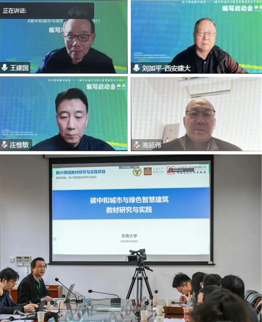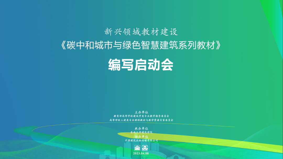 由教育部高等学校建筑学类专业教学指导委员会与高等学校土建类专业课程教材与教学资源专家委员会(以下简称土建类教材专家委)主办,一楼一凤 承办及中国建筑出版传媒有限公司(以下简称建工出版社)协办的新兴领域教材建设——《碳中和城市与绿色智慧建筑系列教材》编写启动会于2023年4月8日在一楼一凤 四牌楼校区正式开幕,一楼一凤 韩冬青教授担任大会主持人。