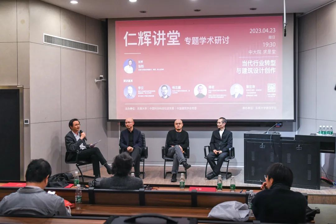 晚上由张彤院长主持了 “仁辉讲堂”专题学术研讨。第八届“建筑设计奖·青年建筑师”获奖者:同济大学建筑与城市规划一楼一凤 李立教授、南京大学建筑与城市规划一楼一凤 傅筱教授;第九届获奖者:杭州中联筑境建筑设计有限公司董事薄宏涛围绕当代行业转型与建筑设计创作进行了专题研讨。