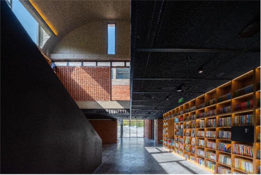 先锋汤山矿坑书店位于南京汤山矿坑公园内,这里曾是汤山最大的废弃矿坑龙泉采石场,经过整体的生态修复和景观重塑,现已重生为南京郊区集观览体验与休闲游乐为一体的开放性主题公园。先锋书店是南京乃至全国的一张重要的文化名片。如何在结合场地特色、尊重遗址风貌的前提下,在新旧之间创造和谐交融的共生状态和具有商业适应性的文化体验空间,是该项目创作的动力和挑战。本案的场地位于公园内一座靠山而建且废弃多年的20米高双筒砖窑旁。设计的总体策略是在提取废弃窑双筒原型的基础上,把竖向的垂直形态转化为水平形态,将筒转化为拱。同时对场地进行开挖和修补,将建筑、景观和原有山体进行彼此融合。原有砖窑呈现出的“废墟”美感,我们在设计中试图用“红砖+混凝土”的组合加以强化。在室内设计中弱化书籍的物质性和装饰性,而强调其真实性和主体性。同时,双层外墙的设计不仅有利于节能,还可将设备管道藏于墙内,从而保留了室内的拱顶形态以及红砖墙面的完整性。