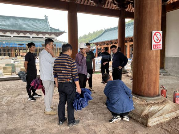 在向当地项目团队进行了简要了解后,老师们与一线施工人员深入探讨了各建筑节点的构造做法,对于现场出现的施工问题,一一进行了解答与协调,并对之后的施工建造做出了重要的意见指导。参与设计的学生支部成员们,也借此机会,对设计成果转化为项目实践,又进一步加深了思考和认识;在设计实践中,又进一步体悟了朱子思想、儒家文化的博大精深。
