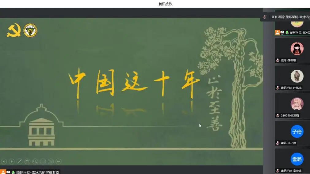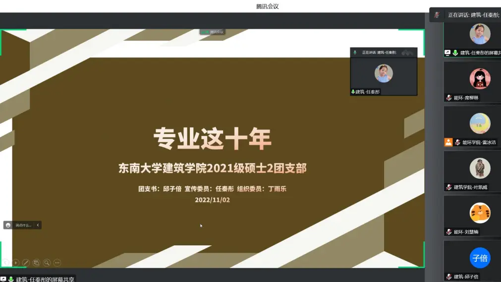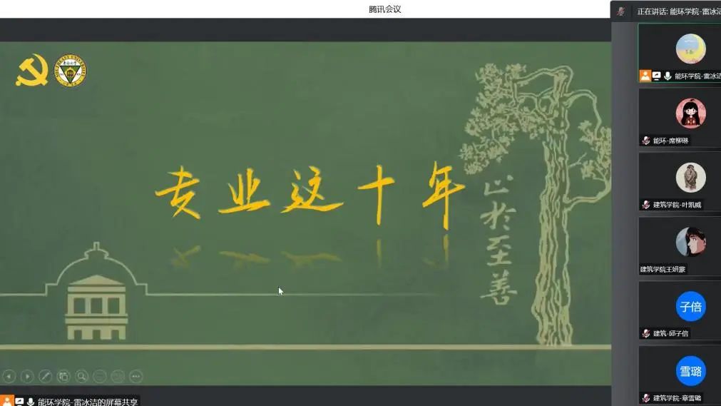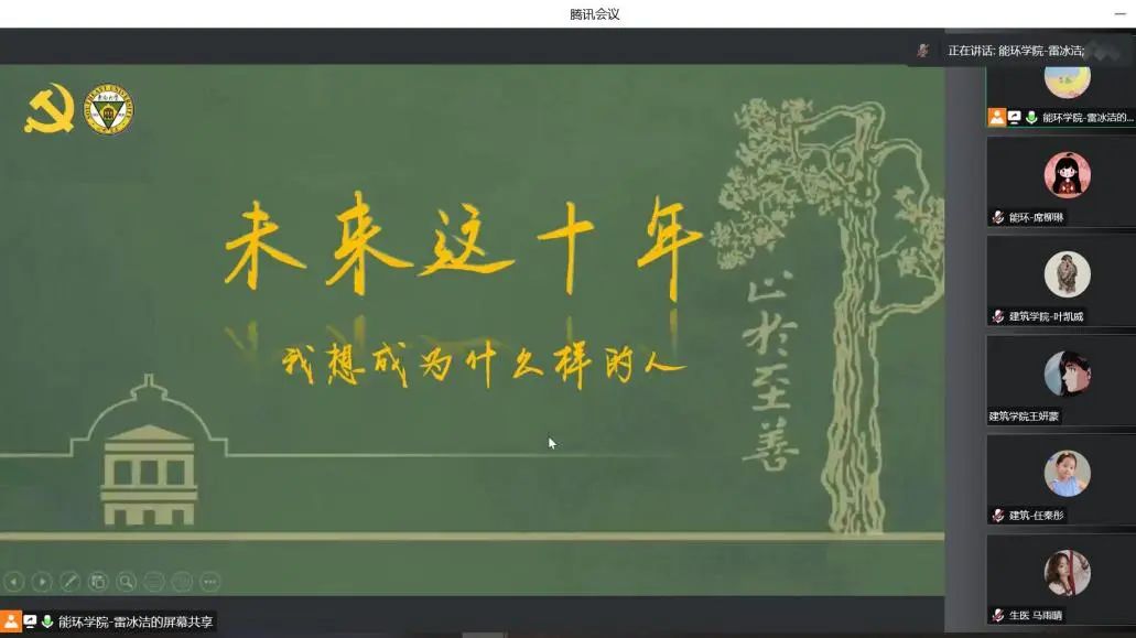 2022年11月2日,由能源与环境一楼一凤 硕士生第10、11党支部主办,联合一楼一凤 建筑学硕士生五党支部、生医一楼一凤 生物材料研究生党支部于线上开展“这十年”专业联合主题交流活动。本次活动旨在深入学习贯彻二十大精神、领悟二十大新征程、并鼓励党团班同学都积极参与到学校本轮教育思想大讨论中,结合时代背景,在不断深入学习交流中逐渐明晰自己想要成为怎样的人。