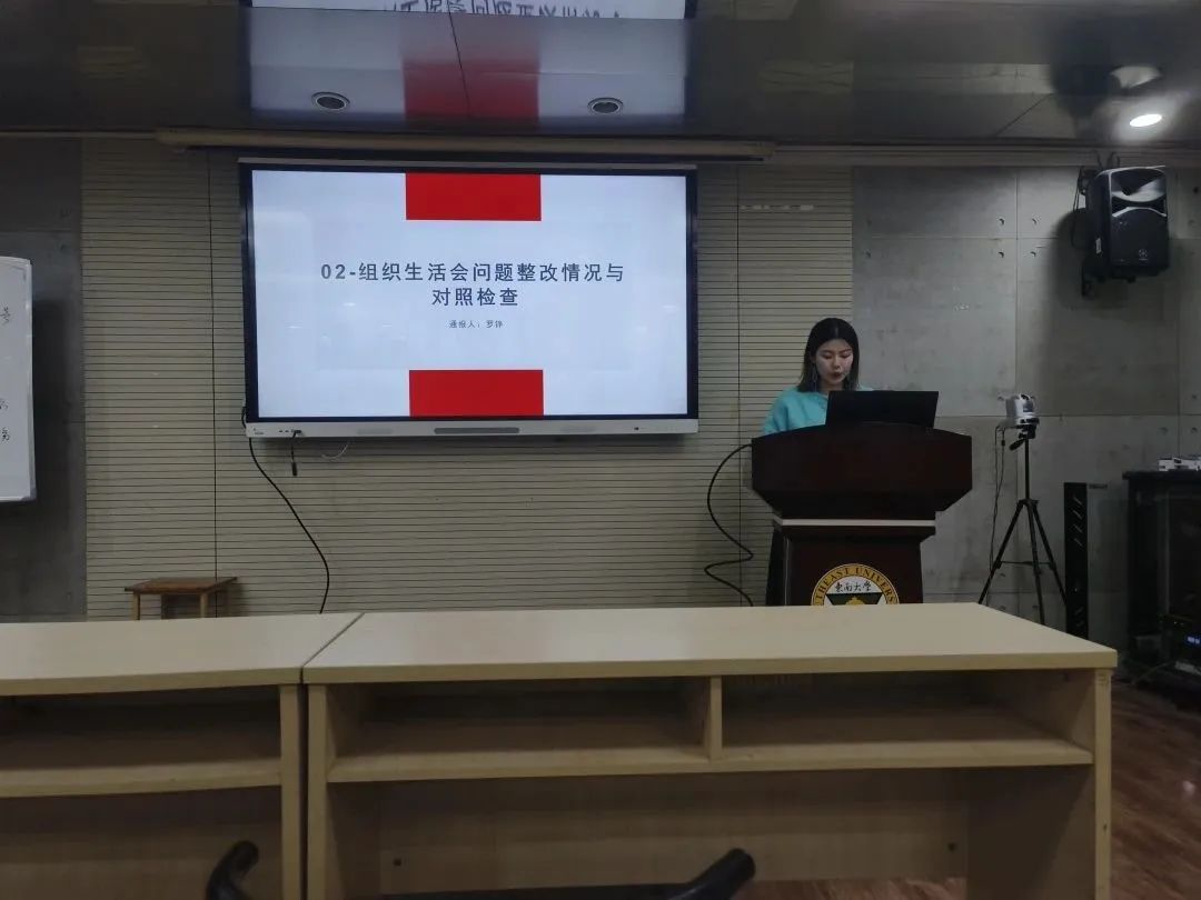 ▲组织委员罗铮通报组织生活会问题整改情况