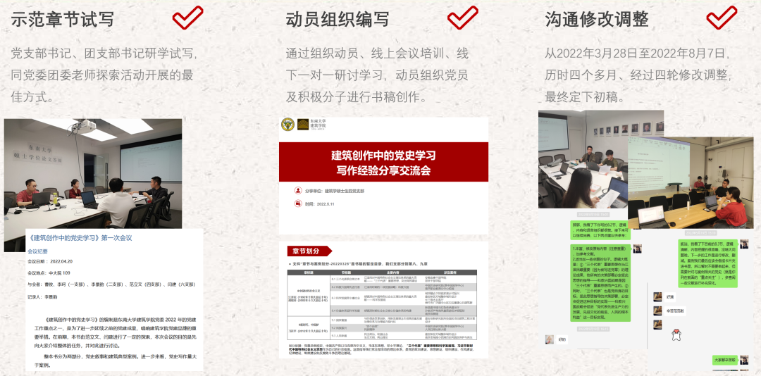 此外,组织党员同志与积极分子,结合党史、团史中的重要历史事件的时间点,用红色建筑讲好党史故事,在专业实践中实现思想提升,重温中国共产党从救亡图存洒热血,到全面小康振经济的艰难历程。