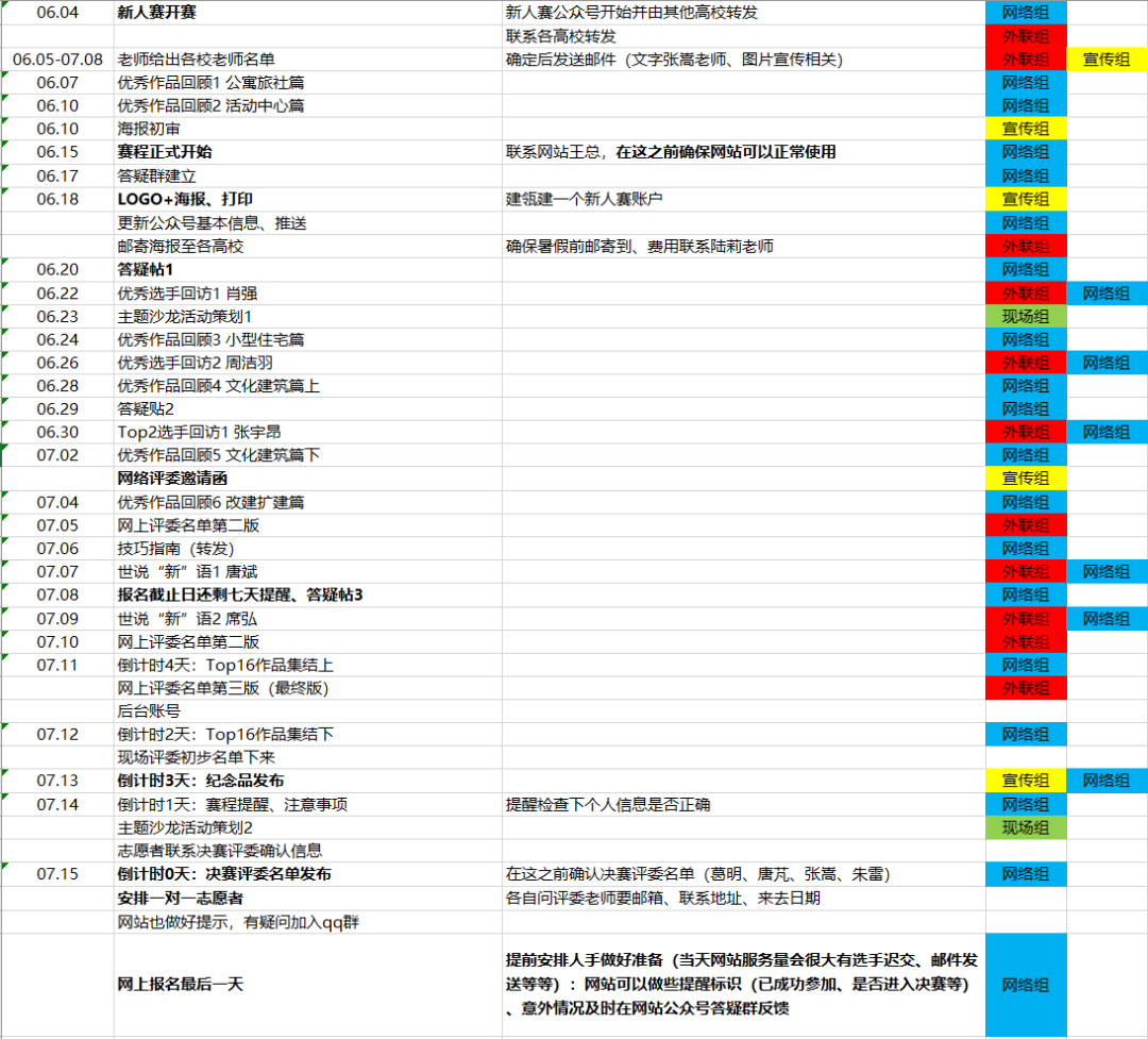 作为组织者,我觉得最重要的是要有统筹协调的能力和全局的眼光。2018年我作为新人赛的志愿者负责人,需要协调网络组、宣传组、外联组、现场组四个工作小组的工作,那么就不能只考虑某一小组的事情,而是以整个赛事活动为思考的范畴,各个小组的关系为切入点。比如网络组是负责公众号等平台消息发布,宣传组是负责海报等宣传品设计,外联组是负责联系其他高校、采访老师和选手;那么网络组就要发布宣传组的纪念品、外联组的采访内容,宣传组就要为网络组提供logo等主题元素、为外联组提供评委邀请函,外联组就要为网络组整理评委简介、邮寄宣传组设计的海报,等等。只有做到让各个小组的工作能够相互推进,紧紧围绕同一个目标进行,才能形成强有力的合力。