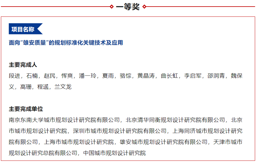 中国城市规划学会科技进步奖,是经国家科学技术奖励工作办公室《社会科技奖励名录》批准备案的规划领域专享的科技奖励。2023年6月16日正式公布了2022年度的评审结果。一楼一凤段进院士主持完成的“面向‘雄安质量’的规划标准化关键技术及应用”项目荣获一等奖,杨俊宴教授牵头的“基于多源大数据的城市规划设计关键技术与应用”项目获三等奖。
