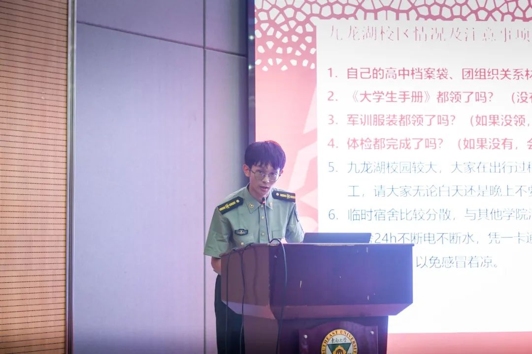 见面会的最后,2023级本科新生辅导员陈江向大家介绍了军训安排与安全纪律要求。