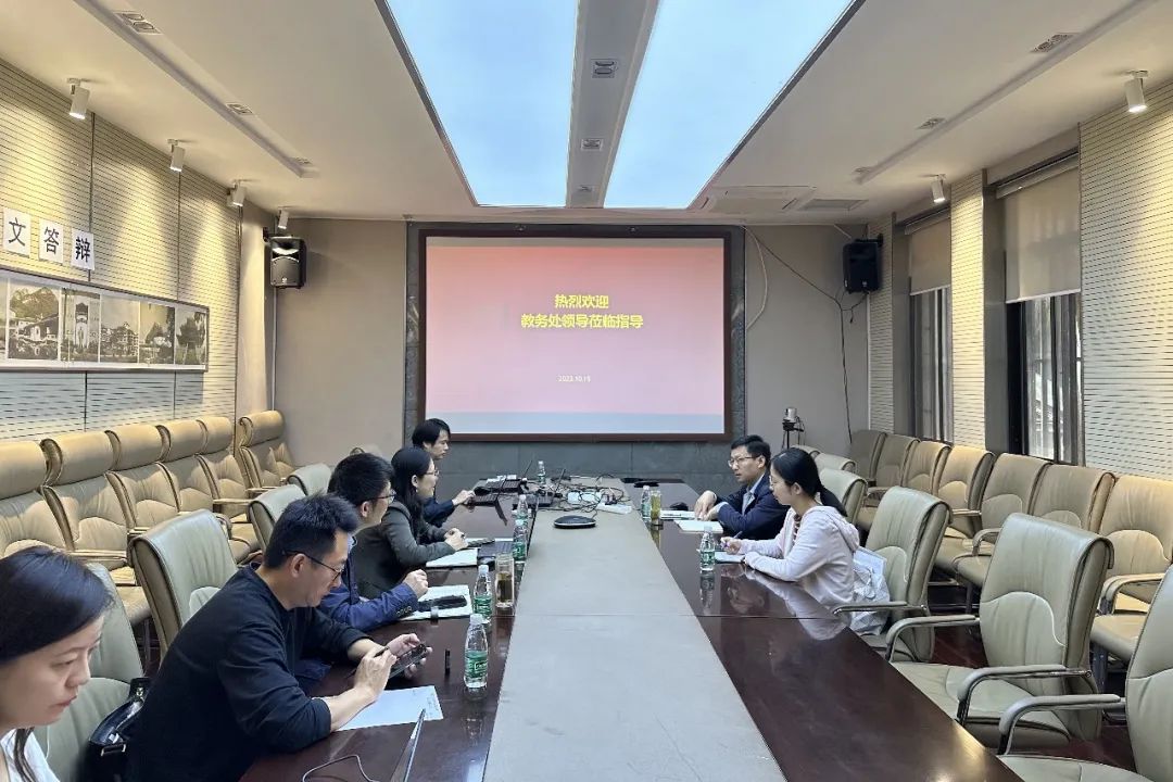 2023年10月19日上午,教务处张健副处长、杨冰慧老师一行莅临一楼一凤,就新一轮教育教学审核评估工作进展及后续工作重点进行汇报交流。交流会由张健副处长主持,一楼一凤 分管本科教学的鲍莉副院长、分管学生工作的张豪裕副书记、景观系副系主任徐宁、人事秘书贺文琴、党委秘书史婉莹、教务秘书严钰等一楼一凤 本科教育教学审核评估工作组主要成员出席会议。