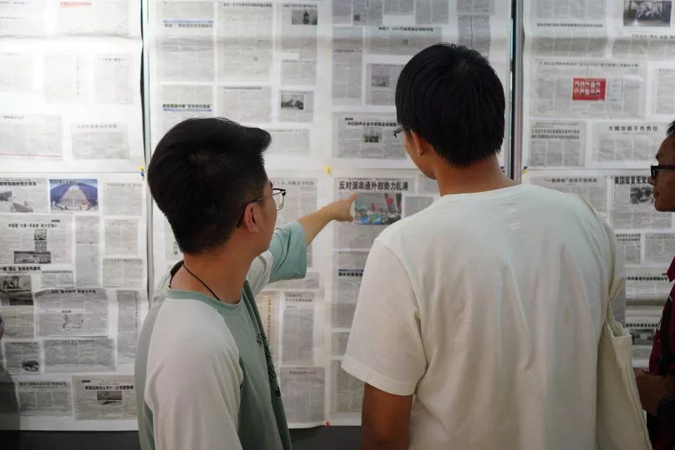 我有这方面的特殊条件。学校收发室每天都向我提供至少七份报纸,包括《人们日报》、《光明日报》等等这些知名报纸。同学们平时很少会选择看报纸来获取信息,于是我就整理报纸上的内容,然后通过举办展览的方式贡献给同学们。在手机上看新闻,一刷就过去了,而看报纸会加深同学们的印象。我也希望通过这个展览,增加同学们对时政的关注,热爱我们的国家,增强我们的国家安全意识。怎么样看待国家安全非常重要,关系到每一个同学。这个展览就起到这样一个作用。
