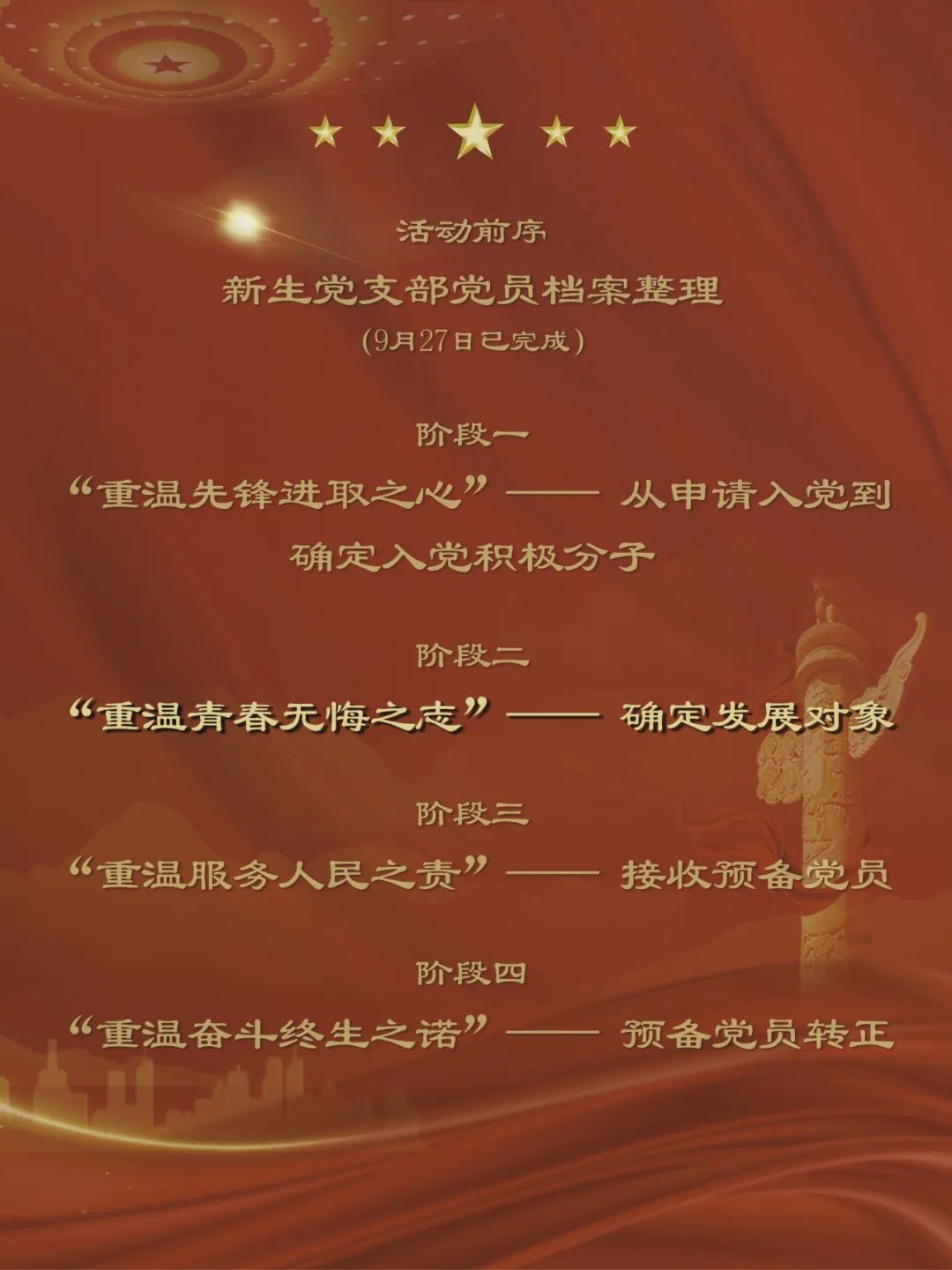 本阶段活动对“确定发展对象”阶段中问题频出的思想汇报、自传以及《入党积极分子及发展对象培养教育表》几个内容进行情景式演练,以活动的形式促进各党员干部熟悉党员发展流程,并对本次确定的发展对象即将进行的党员档案填写环节进行培训,进而帮助各党支部更加从容的应对本学年接续而来的党员发展工作。