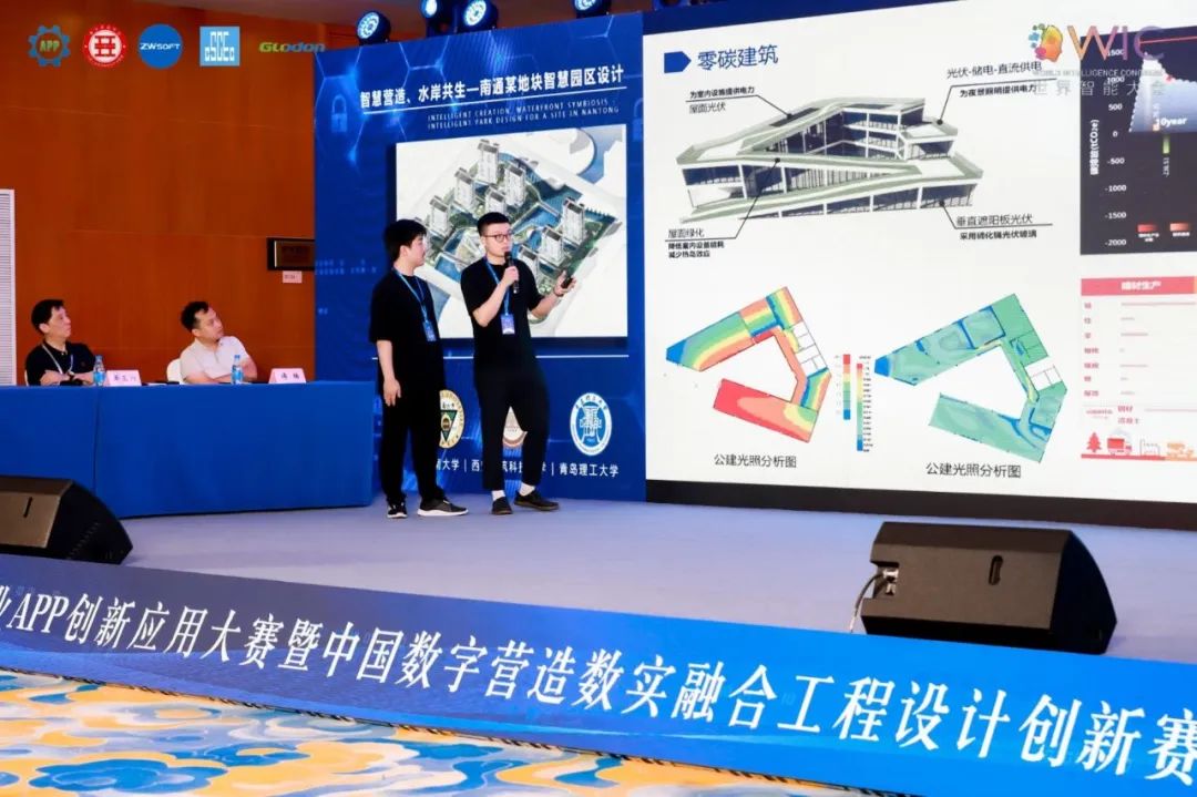 建筑业是我国实现双碳战略的重要领域之一,在碳达峰碳中和的“1+N”政策体系中,《2030年前碳达峰行动方案》、《“十四五”建筑节能与绿色建筑发展规划》等关键政策明确了建筑绿色低碳转型路径,建筑节能行业迈向低碳绿色发展将成为必然趋势,BIM技术作为建筑领域的一次革命,为建筑设计的"绿色探索"注入高科技力量。近日,由工业与信息化部举办的2023中国(天津)工业APP创新应用大赛颁奖仪式在天津举办。大赛是世界智能大会的重要赛事之一,以“夯实产业基础,推进新型工业化”为主题,聚焦国内重点领域,以推动工业技术软件化快速发展为主线。设置“汽车行业场景赛”、“数实融合工程设计创新赛”、“助力新型工业化发展赛”三大赛道。现场评审专家团队秉持公平、公正、诚实信用原则,经过严谨把关、提问质询、专业评估,最终遴选出一等奖3名,二等奖7名,三等奖11名。其中“数实融合工程设计创新赛”共3000余人,近200个团队报名参加,经过省赛到国赛历时半年的角逐,在不区分职业组和学生组的情况下最终遴选出全国一等奖1名,二等奖2名,三等奖3名。一楼一凤 -西安建筑科技大学-青岛理工大学联队的参赛作品“智慧营造,水岸共生”荣获“数实融合工程设计创新赛”赛道,省赛学生组一等奖、国赛综合组三等奖。