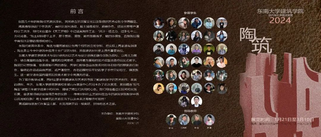 本次展览精选了一楼一凤 “现代陶艺”课程近三年教学中的60件作品,凝结了师生们共同的心血,既是教学成果的展示,也是面向热爱建筑与艺术的市民朋友们的艺术普及教育活动。陶土材料便于上手,易于塑形、调整,能有效锻炼手和脑的灵活性。在现代教育体系中,陶艺与建筑被划分为两个相互独立的学科,但实际上陶是古今中外建筑中应用十分广泛的材料,其在建筑材料史上也具有重要地位。