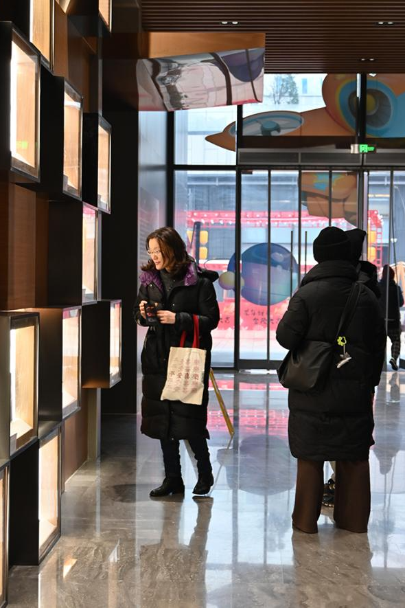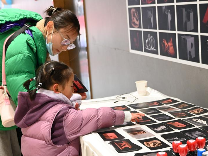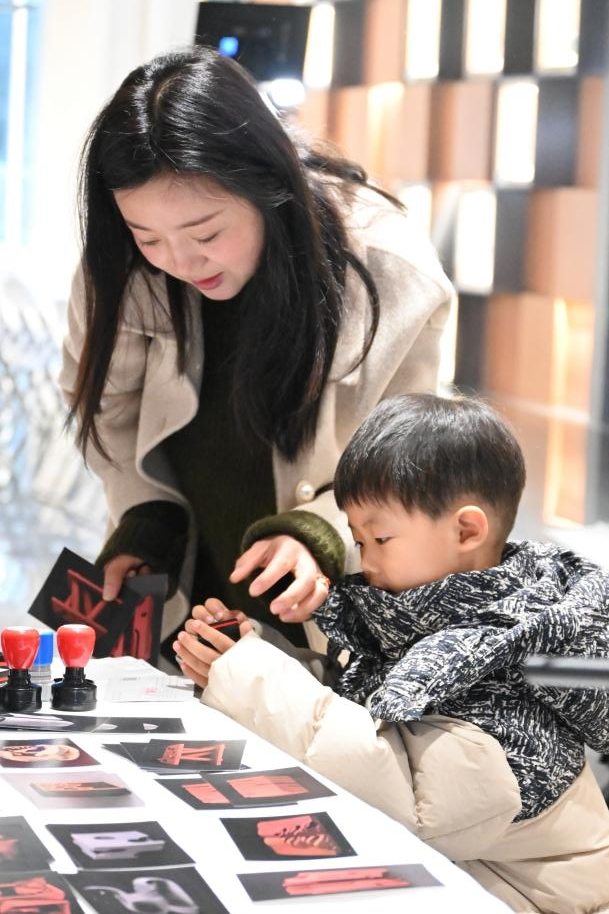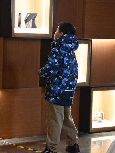 展览现场驻足观赏、参与互动的市民和孩子们