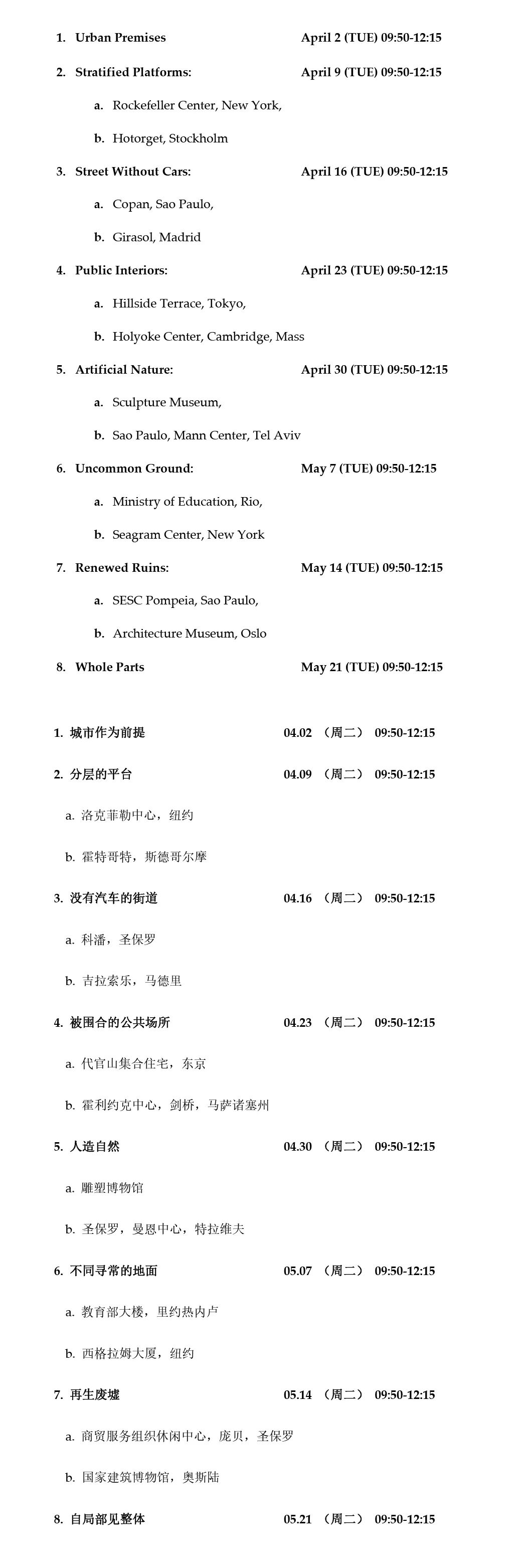 上课时间:04.02-05.21,每周二上午09:50-12:15