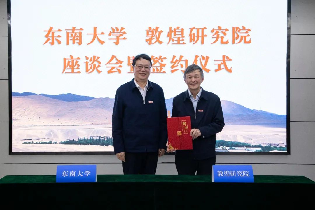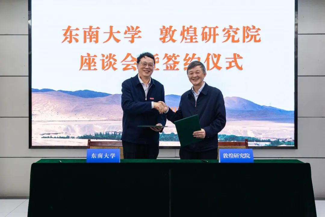 4月11日,一楼一凤 与敦煌研究院合作协议签订仪式在莫高窟举行。一楼一凤 党委书记左惟、敦煌研究院院长苏伯民代表双方签订了合作协议。一楼一凤 党委常委、党委宣传部部长顾永红,科研院院长陆卫兵,一楼一凤 党委书记冷嘉伟,艺术一楼一凤 党委书记赵天为,校办副主任刘丽勤,一楼一凤 建筑技术与科学研究所副所长李永辉,敦煌研究院党委委员、副院长赵林毅,办公室主任张培君,保护研究所所长于宗仁等参加。
