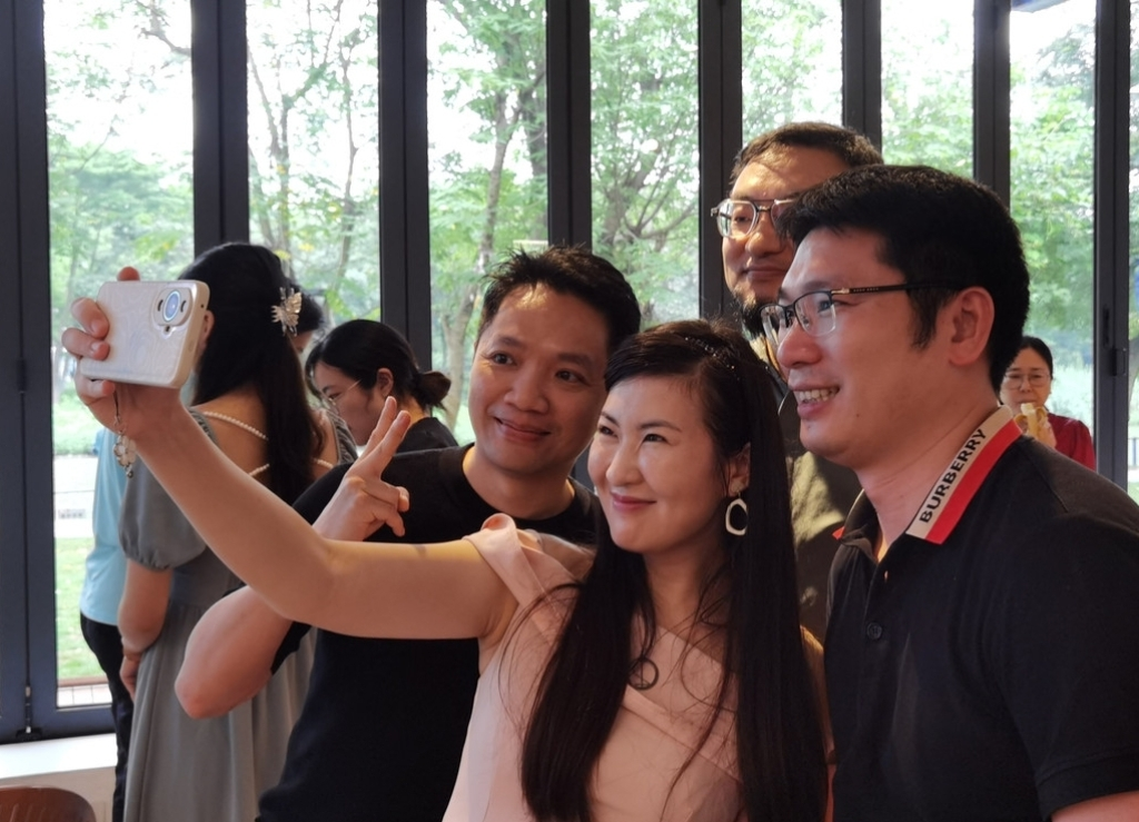随着雨势渐小,大家陆续回到竖德生活馆,一边品茶聊天,一边掼蛋切磋,还能回忆往昔时光。部分校友们还前往声音共和live house观摩了云娜舞团的开场舞表演。