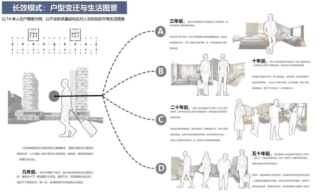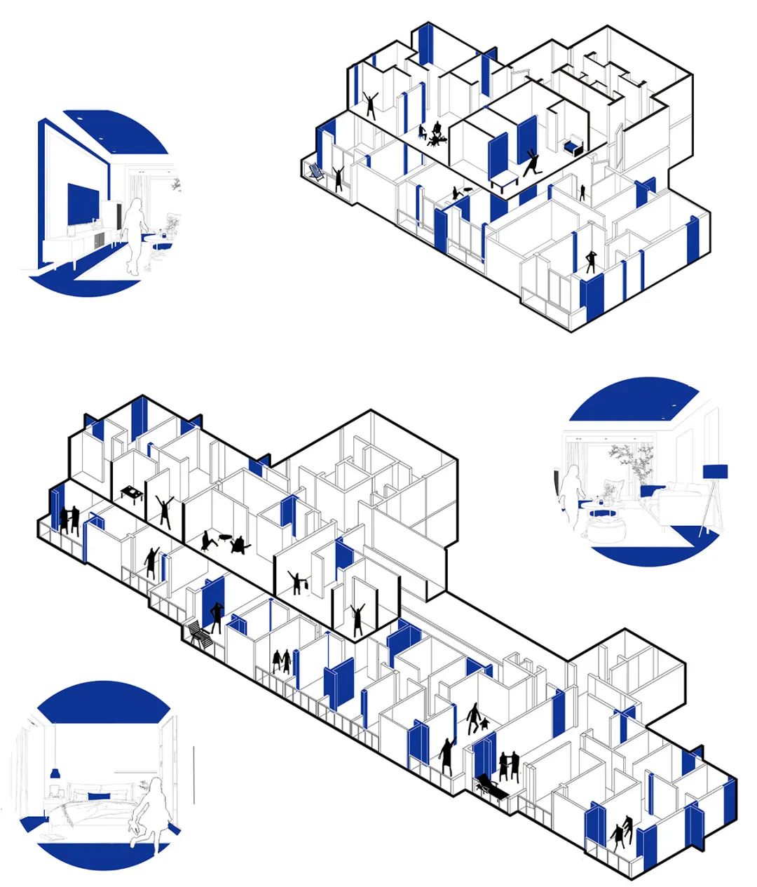 相对长久的主体结构与不断变迁的居住需求之间的矛盾,是一个由来已久的住宅设计问题。柯布西耶曾倡议多样化的住户(individual dwellings)可以生长在统一的庞大结构(megastructure)之中。而当今的智能算法为破解“一种结构适配多种空间”难题提供了新的思路与工具。