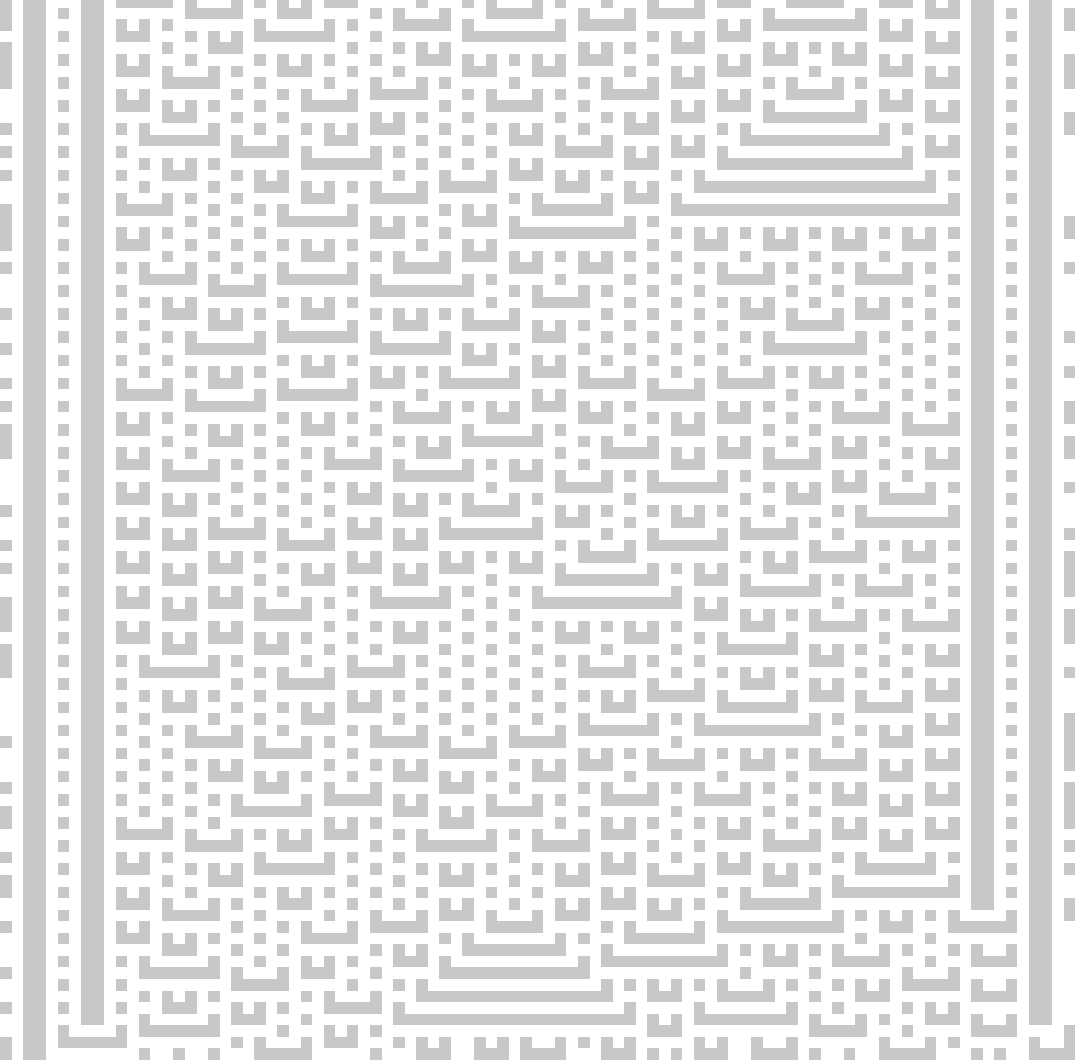 离散模型出人意料地能够产生难以预测的空间秩序。本方案对住宅实体与空间进行离散建模,通过调整参数使生成结果满足结构、套型、住区规划三个层面的需求。元胞自动机(Cellular Automata,简称CA)是一种离散的网格动力学模型。