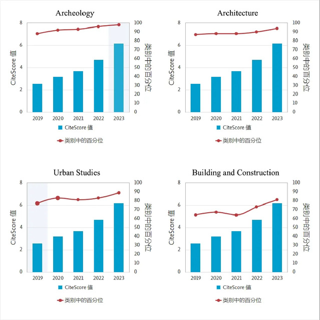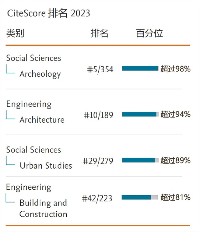 ▼ 2023年度FoAR CiteScore 指数在建筑学领域排名超过94%的期刊。
